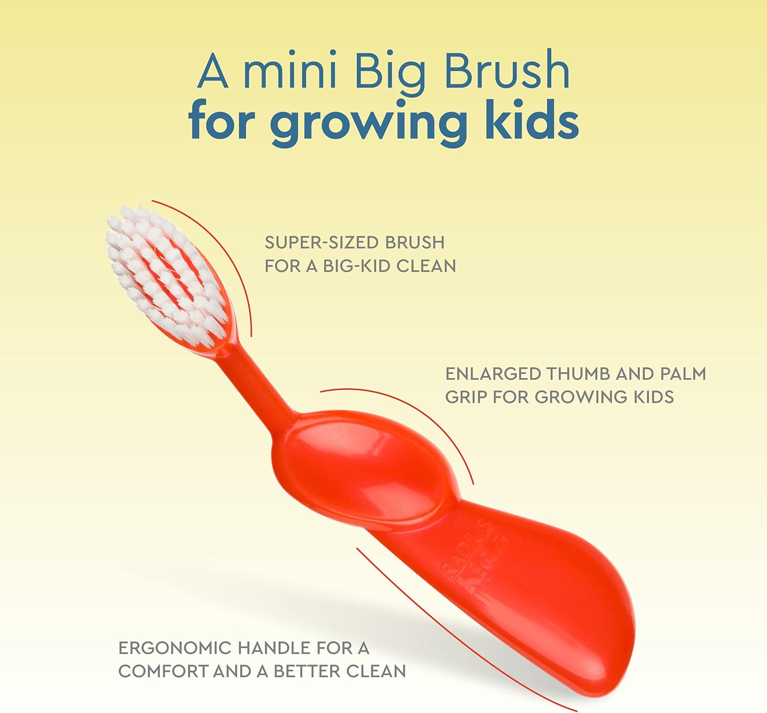 - EASY FOR SMALL HANDS TO GRIP: The Kids easy to hold handle complies with the dentist recommended 45 degree brush to tooth angle and the enlarged Thumb and Palm design makes it much easier for small hands to grip and control.