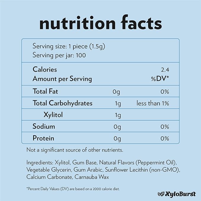 - BOOST ORAL HEALTH - Professional studies suggest that incorporating xylitol into your daily routine, alongside regular brushing, diminishes the risk of tooth decay. XyloBurst dental chewing gum helps you achieve the recommended 6 to 8 grams of xylitol daily, fostering healthy gums & teeth, resulting in fewer cavities and a radiant smile.