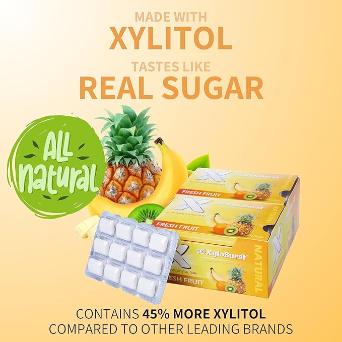 - BOOST ORAL HEALTH - Professional studies suggest that incorporating xylitol into your daily routine, alongside regular brushing, diminishes the risk of tooth decay. XyloBurst dental chewing gum helps you achieve the recommended 6 to 8 grams of xylitol daily, fostering healthy gums & teeth, resulting in fewer cavities and a radiant smile.