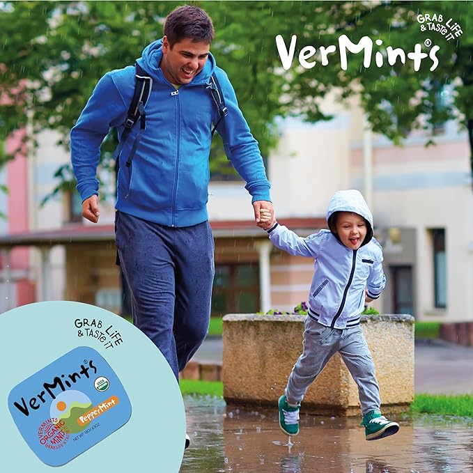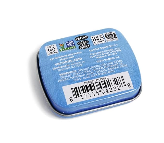 VerMints Organic Breath Mints PepperMint Candy Mints for Real Long-Lasting Flavor, Travel Size Tin - Non-GMO, Nut Free, Gluten Free, Vegan, Kosher Peppermints - .63oz/18g Tins (Pack of 12)