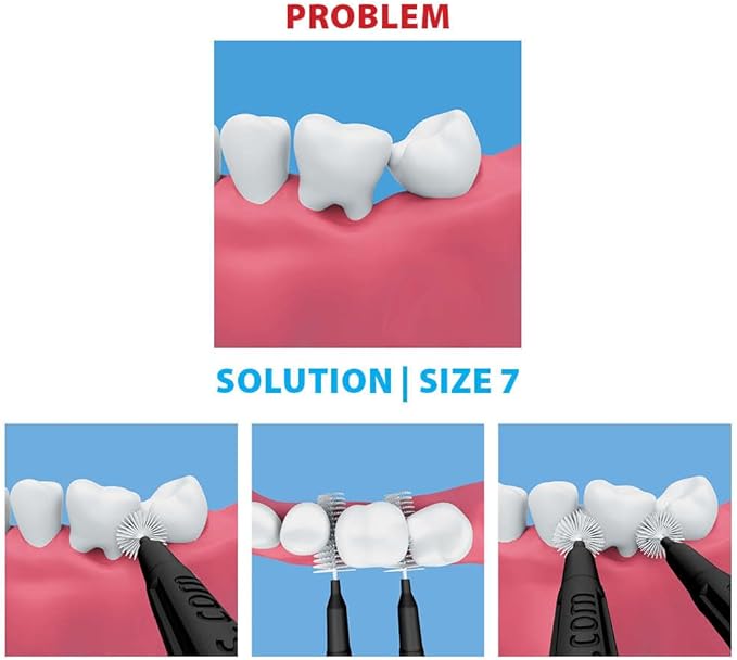 - Size 7 (Black): This set of 40 interdental brushes is engineered for effective cleaning in extremely wide interdental spaces, making them ideal for individuals with larger spaces between teeth, orthodontics, implants or perio