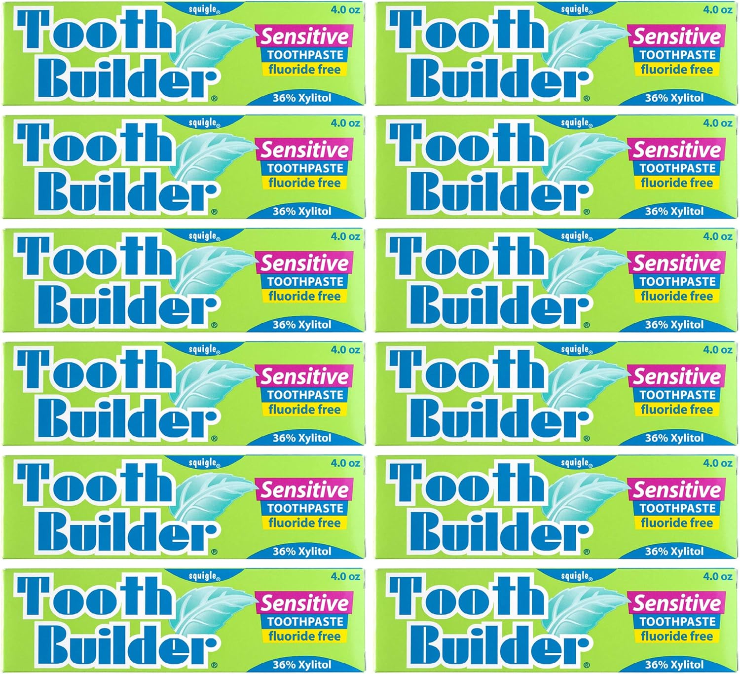 Squigle Tooth Builder SLS Free Toothpaste (Stops Tooth Sensitivity) Prevents Canker Sores, Cavities, Perioral Dermatitis, Bad Breath, Chapped Lips, 4 oz (48 Ounce (Pack of 12), Unflavored)