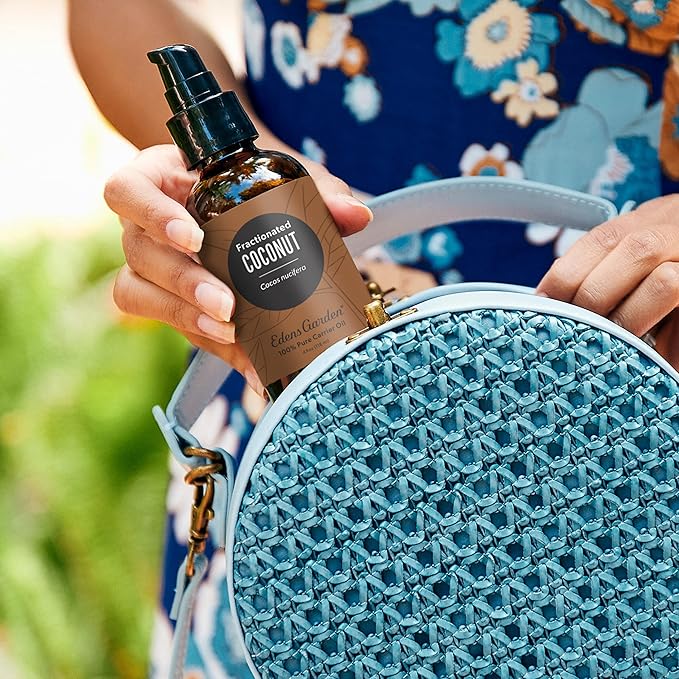 - WAYS TO USE- Edens Garden Fractionated Coconut oil is an essential addition to your beauty arsenal. Use it as a gentle and effective makeup remover that dissolves impurities without stripping your skin's oils. For a relaxing massage, combine it with your favorite essential oils—10-12 drops per ounce of carrier oil—to create a luxurious, hydrating blend. This carrier oil also works wonders as a deep conditioning mask for hair; simply massage a small amount into your scalp and hair to enhance shine and manageability.