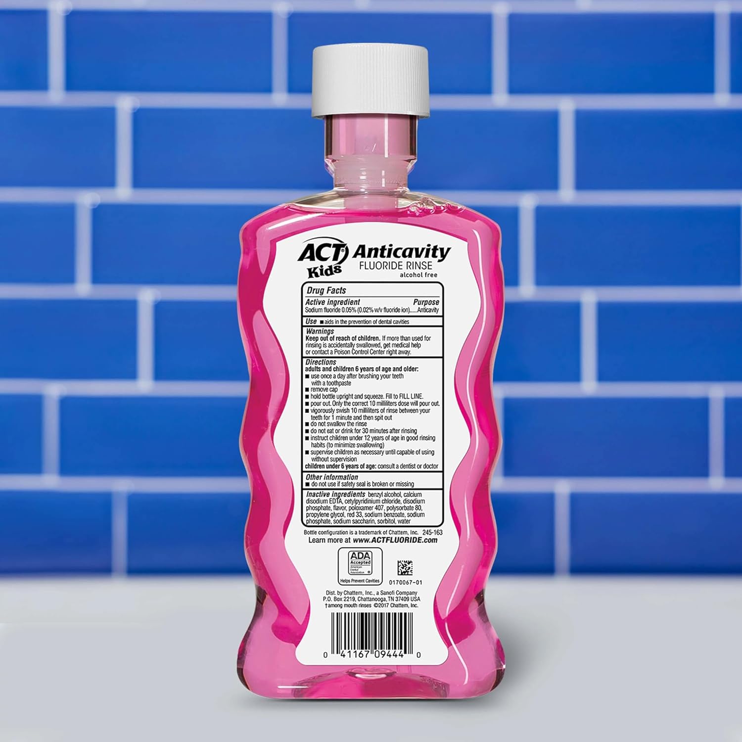 ACT Kids Anticavity Fluoride Rinse for Bad Breath Treatment, Bubble Gum Blowout, 16.9 fl. oz. (Pack of 3)
