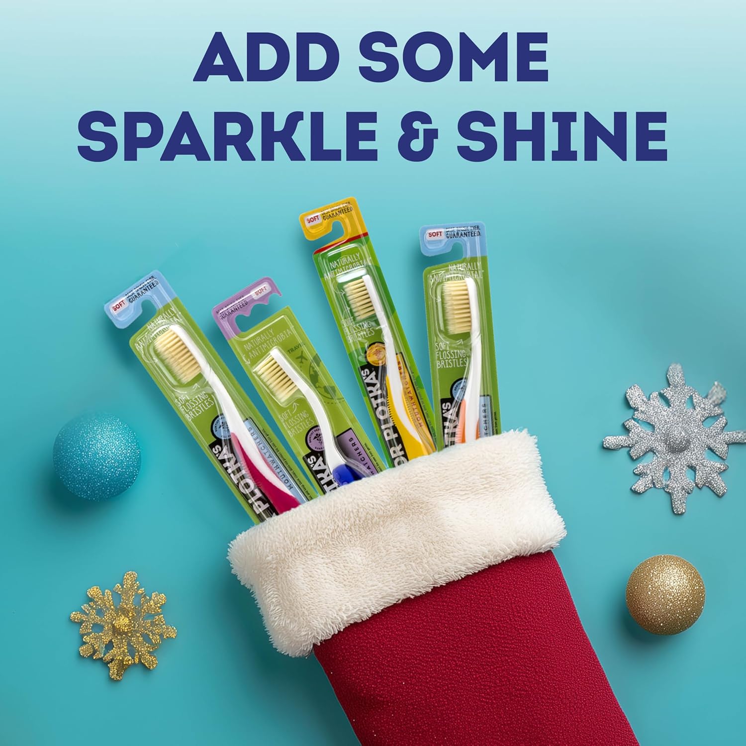 - SOFT BRISTLE TOOTHBRUSH WITH BUILT-IN FLOSSER: Experience a deeper clean with a toothbrush designed to do more. The soft, dual-layered bristles include shorter bristles that gently massage gums while breaking up plaque and sweeping away food particles, delivering a complete clean to help reduce the risk of cavities.