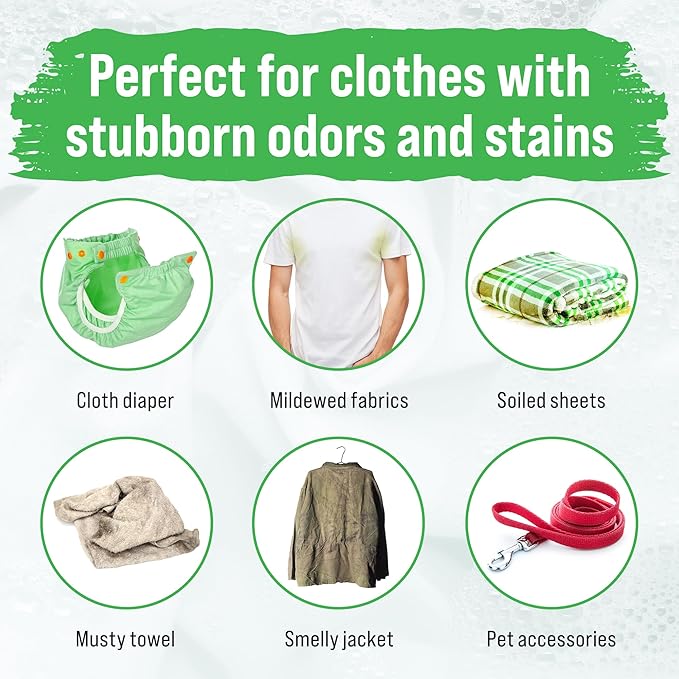 - Contains NO Enzymes, Phosphates, Optical Brighteners, SLS, or Parabens.