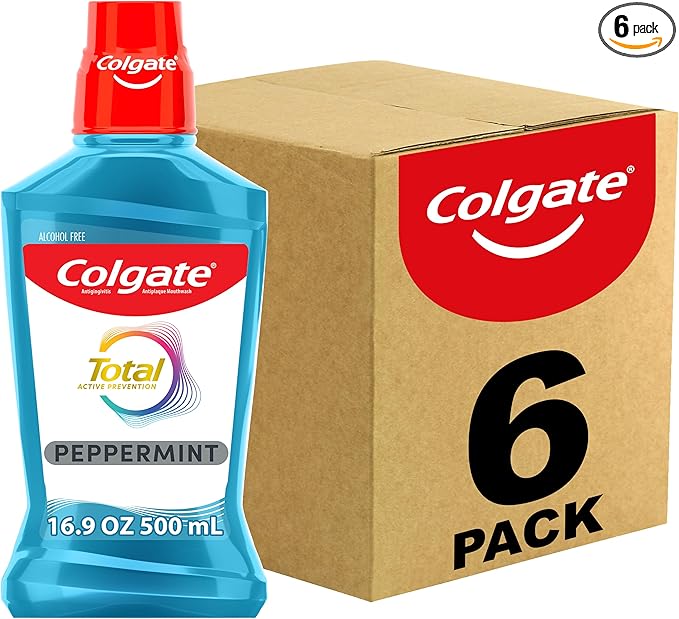 Colgate Total Pro-Shield Alcohol Free Mouthwash, Antibacterial Formula, Peppermint - 500 mL, 16.9 fluid ounce (6 Pack)