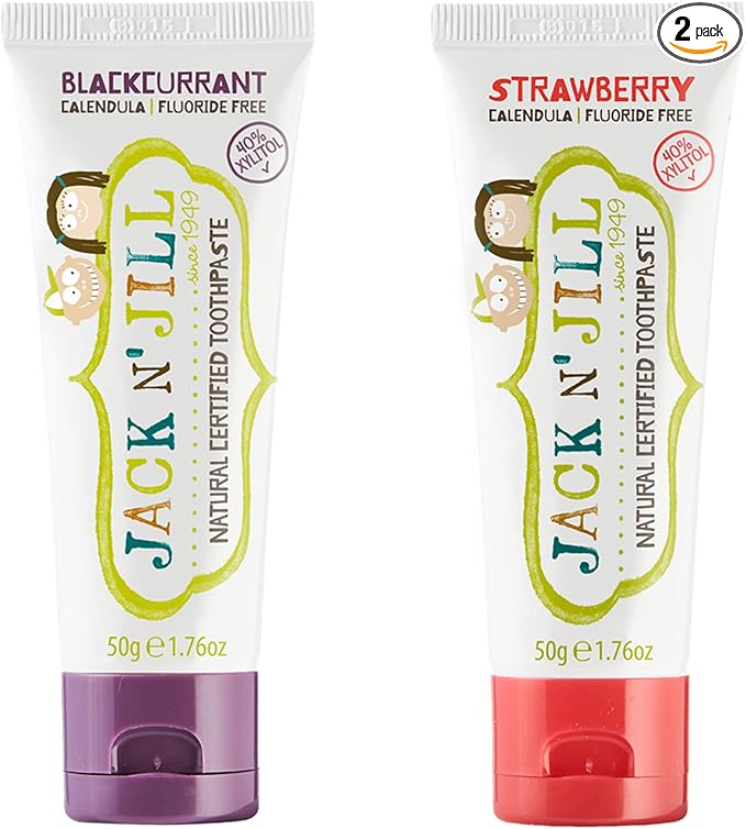 Jack N' Jill Natural Toothpaste for Kids - Fluoride Free Toothpaste, 40% Xylitol, BPA Free - Blackcurrant & Strawberry, 1.76 oz (2 Pack)