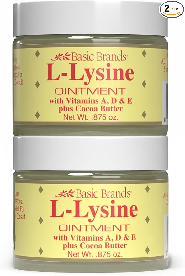 Basic Brands - L-Lysine Ointment - 0.875 oz - Lysine Cold Sore Treatment and Blister Relief - Soothes Chapped Lips and Dry Skin – 2-Pack