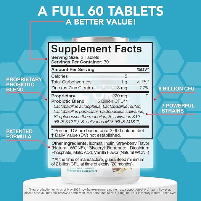 - CLINICALLY RESEARCHED A potent blend of 7 dental probiotics; these oral probiotics for teeth and gums are gluten, dairy & sugar-free, vegan-friendly, and support halitosis treatment for bad breath.