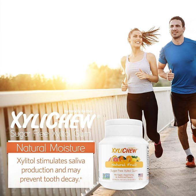 Xylichew 100% Xylitol Chewing Gum - Non GMO, Non Aspartame, Gluten Free, and Sugar Free Gum - Natural Oral Care, Relieves Bad Breath and Dry Mouth - Fruit, 60 Count