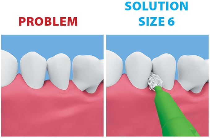 - Size 6 (Green): This set of 40 interdental brushes is engineered for effective cleaning in wider interdental spaces, making them ideal for individuals with larger gaps between teeth, orthodontics or perio