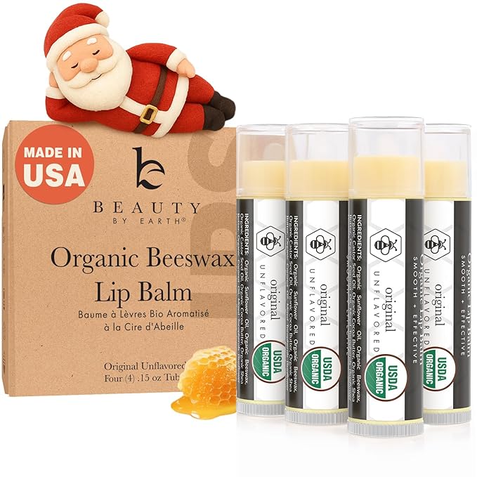 USDA Organic Lip Balm - USA Made with Natural Ingredients, Mens Stocking Stuffers, 4 Pack Unflavored Chapstick for Dry Lips, Beauty Birthday Gifts for Her & Him, Lip Moisturizer, Gift Ideas