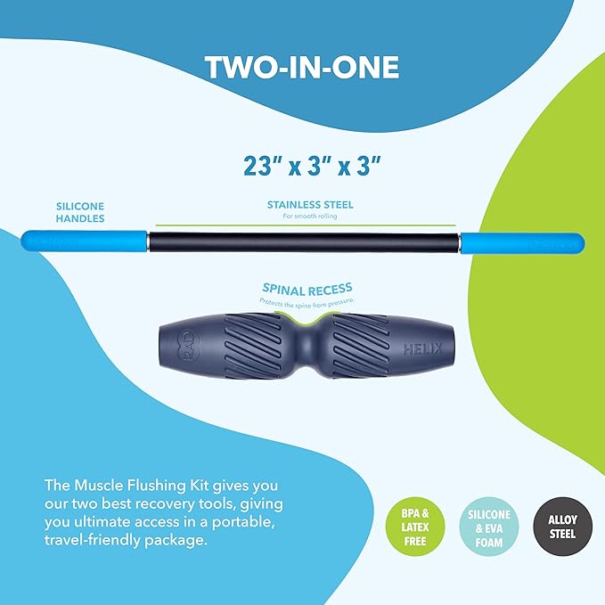 - Dual-Action Relief: The RAD 2-in-1 Muscle Flushing Kit includes both a extra firm, high-density foam roller and a massage roller stick, providing comprehensive deep tissue massage for full-body relief and recovery.