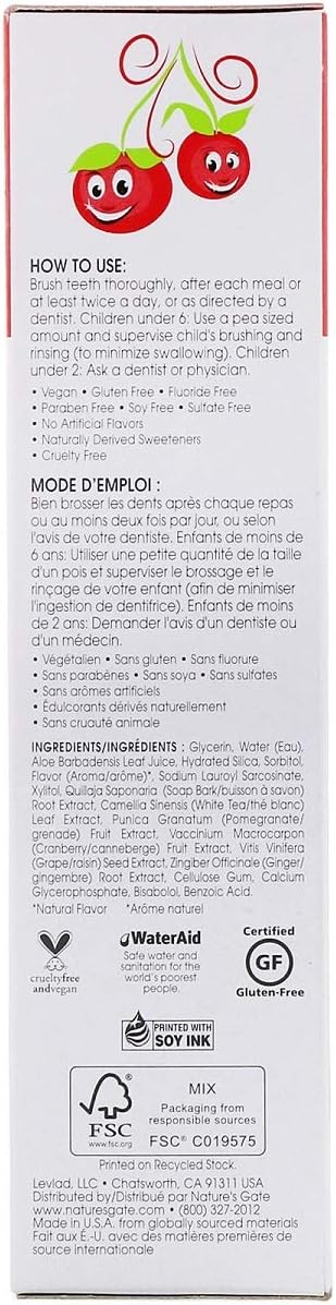 - Pack of 3 tubes, Each tube is 5 ounces Kids will love brushing their teeth with this Cherry Flavored toothpaste Formulated to gently clean and polish even the tiniest teeth Vegan, Gluten-Free, Soy-Free, Fluoride-Free, Paraben-Free Sulfate-Free, No Artificial Flavors or Sweeteners, Cruelty-Free