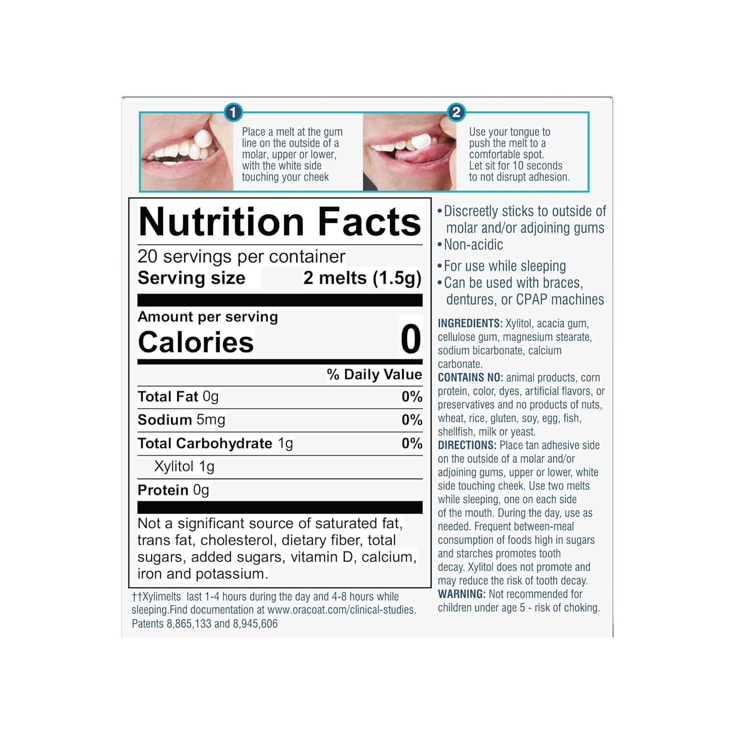 - LONG-LASTING RELIEF: Experience up to 8 hours of dry mouth care with OraCoat XyliMelts. These discs attach to gums or teeth, helping as saliva substitute dry mouth gum care