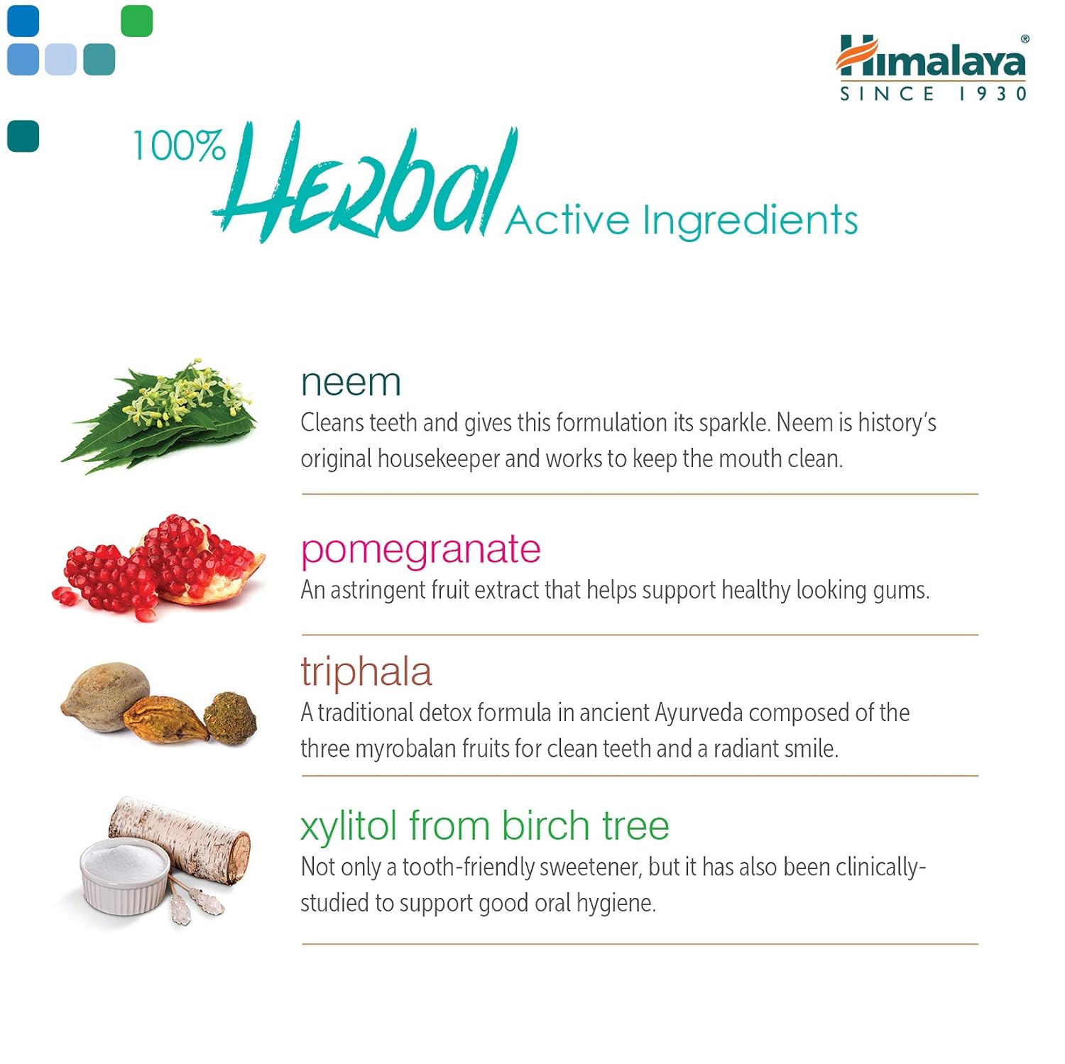 - Botanical blend: Himalaya toothpaste uses herbal ingredients with Ayurvedic wisdom including Neem, Pomegranate, Triphala, and Xylitol to deliver a botanically brilliant brushing experience