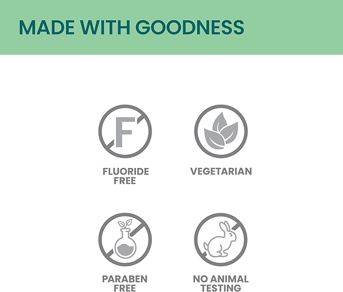 - FREE FROM COMMON CONCERNS: Includes ingredients for quality and stability, but remains free from other ingredients such as fluoride, harsh abrasives or chemical bleaches.