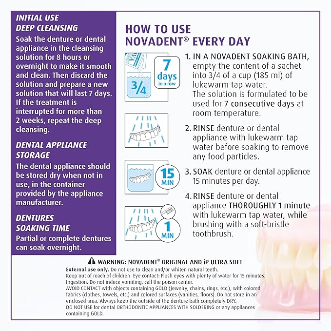 Novadent Dentures Cleaner – for Dental Appliances, Retainers, Trays, Mouth Guards, Teeth Aligners - 1 Year (52 sachets)