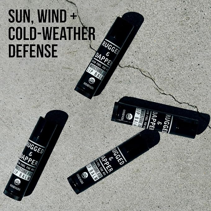 RUGGED & DAPPER Lip Balm for Men - Certified Organic + Natural Ingredients - 4 Pack - Hydrating Mens Chapstick - USA Made