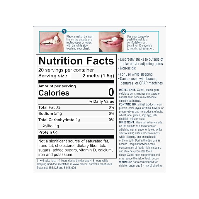 - LONG-LASTING RELIEF: Experience up to 8 hours of dry mouth care with OraCoat XyliMelts. These discs attach to gums or teeth, helping as saliva substitute dry mouth gum care