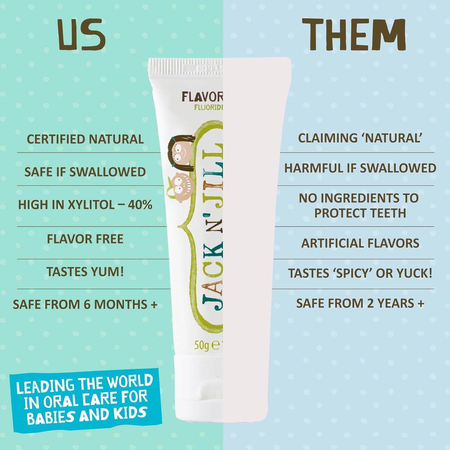 Jack N' Jill Natural Toothpaste for Kids - Fluoride Free Toothpaste, 40% Xylitol, BPA-Free - Flavor Free, 1.76 oz (Pack of 3)