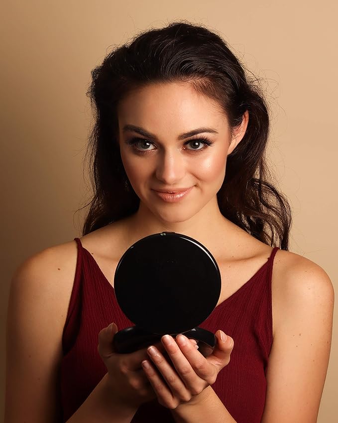 - Elegant compact mirror with a glossy black finish suitable for any occasion