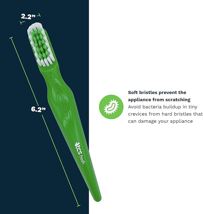 - EFFECTIVE FOR ALL REMOVABLE DENTAL APPLIANCES - Use the TCS Fresh Denture Toothbrush for false teeth, flexible or acrylic dentures, partials, nightguards, retainers, aligners, sports mouthguards, and all other removable dental appliances for your teeth and mouth