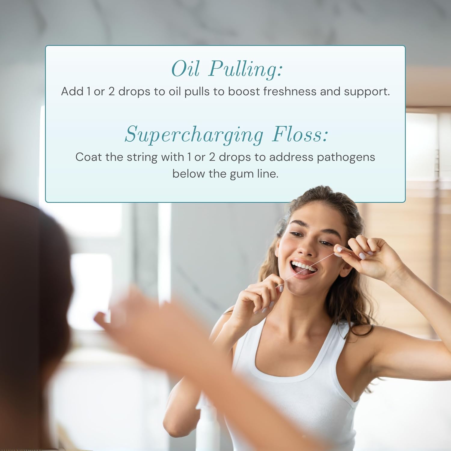 - USE FOUR WAYS: (1) BRUSH using a few drops as toothpaste, or add to your toothpaste (2) FLOSS with a drop of oil to clean deeper in gum pockets (3) SWISH with 1-2 drops in water as an oral rinse mouthwash tonic (4) MASSAGE on sensitive or sore areas of gum tissue.