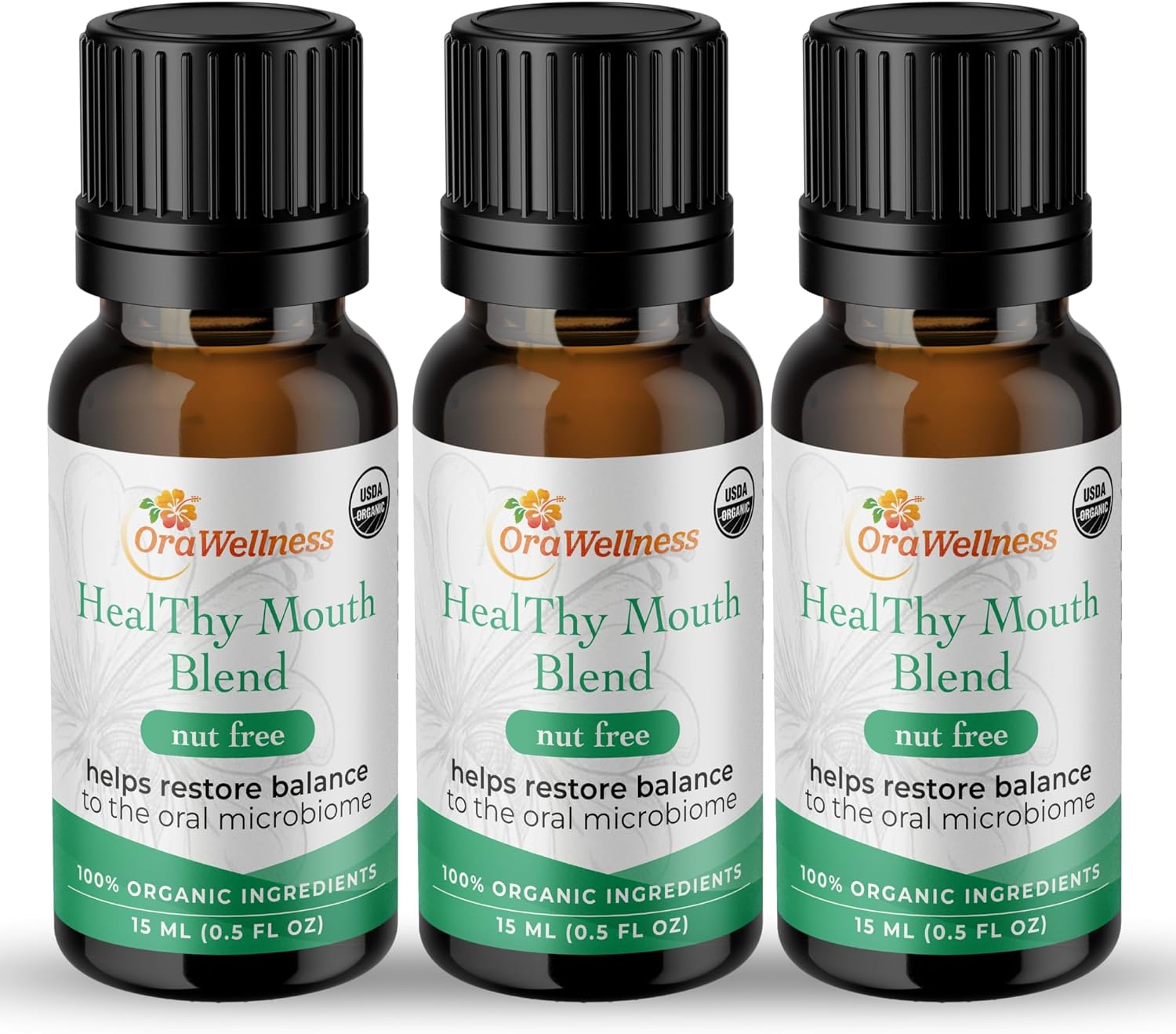 OraWellness Nut Free Healthy Mouth Blend Organic Tooth Oil, Made in The USA Fluoride Free Toothpaste & Mouthwash Alternative, Natural Rinse for Healthy Teeth & Gums for Women, Men and Kids, Pack of 3