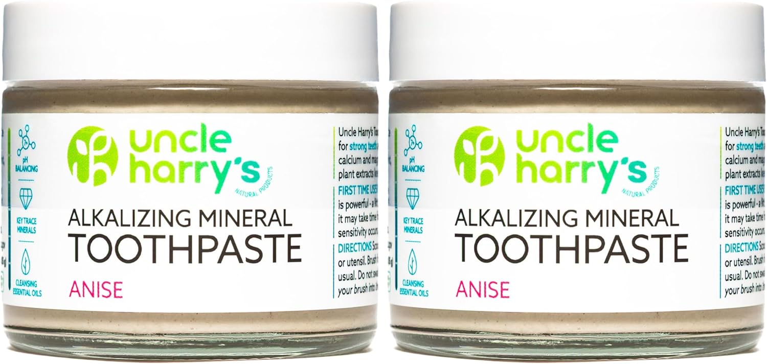 Uncle Harry's Anise Remineralizing Toothpaste | Natural Whitening Tooth Paste Freshens Breath & Promotes Enamel | Vegan Fluoride Free Toothpaste (2 Pack)