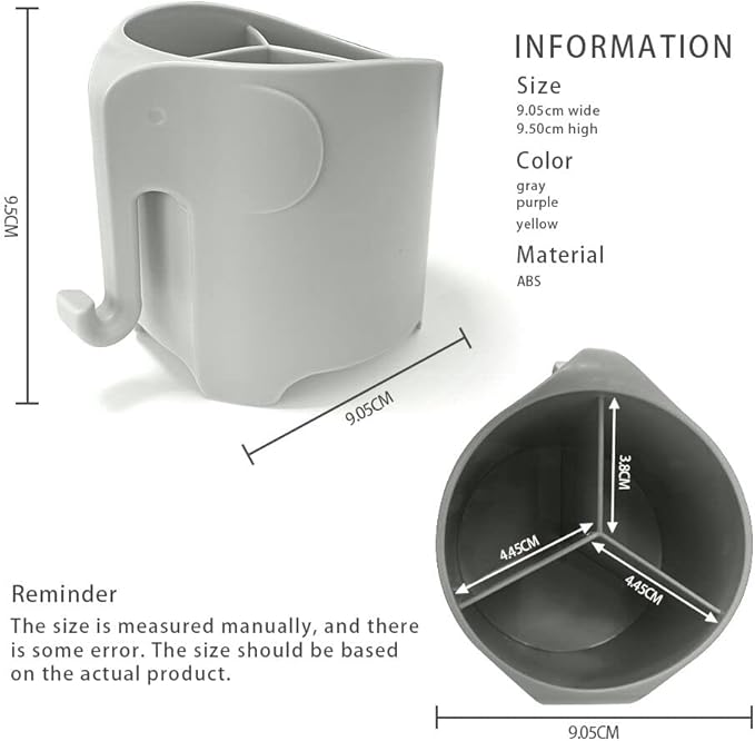 - 🐘🩶VERSATILE TOOTHBRUSH HOLDER🩶: RyanLemon toddler toothbrush holder with 3 sections and a hook, so our toothbrush holders for kids can hold different items and keep them apart and is big enough to hold electric toothbrushes and toothpaste. And the hook can be used for hanging bath balls.