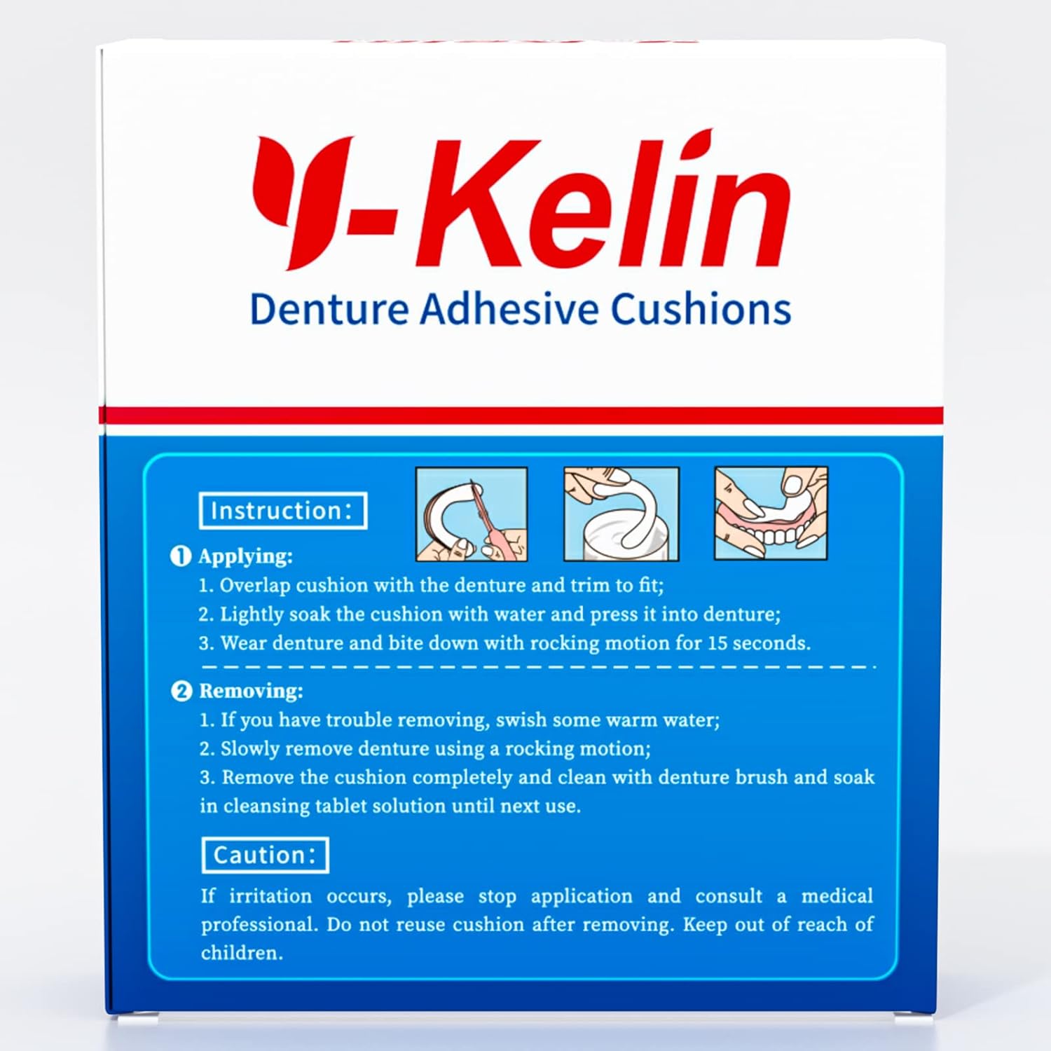 Y-Kelin Lower Denture Adhesive Cushions, Adhesive-Free Denture Pads for Sore Gums, 30 Pads*2 (60 Strips)
