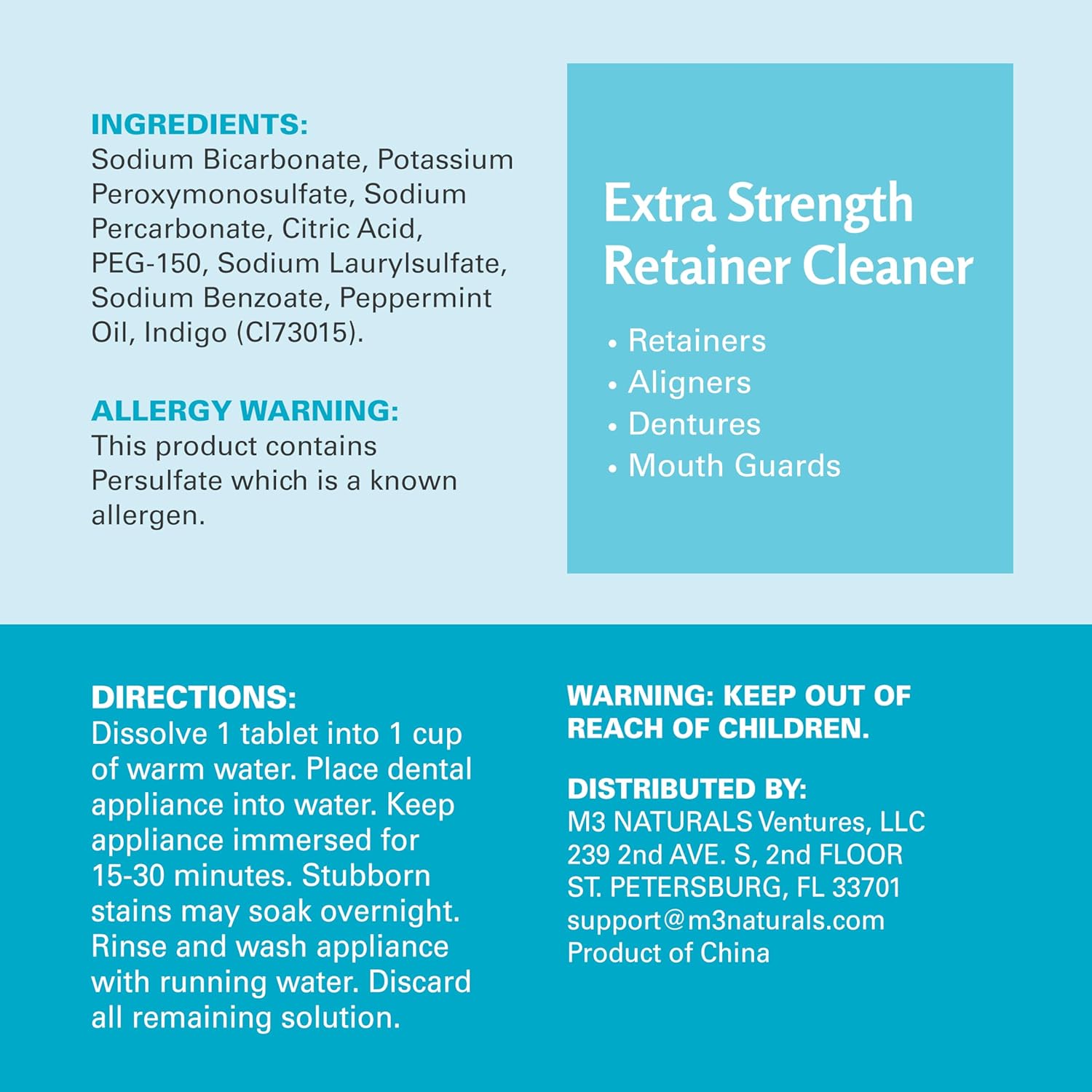 - M3 Extra Strength Cleaning Tablets are laboratory tested working to restore clarity by removing unwanted odor and buildup in every corner of any oral dental appliance and denture bath.*