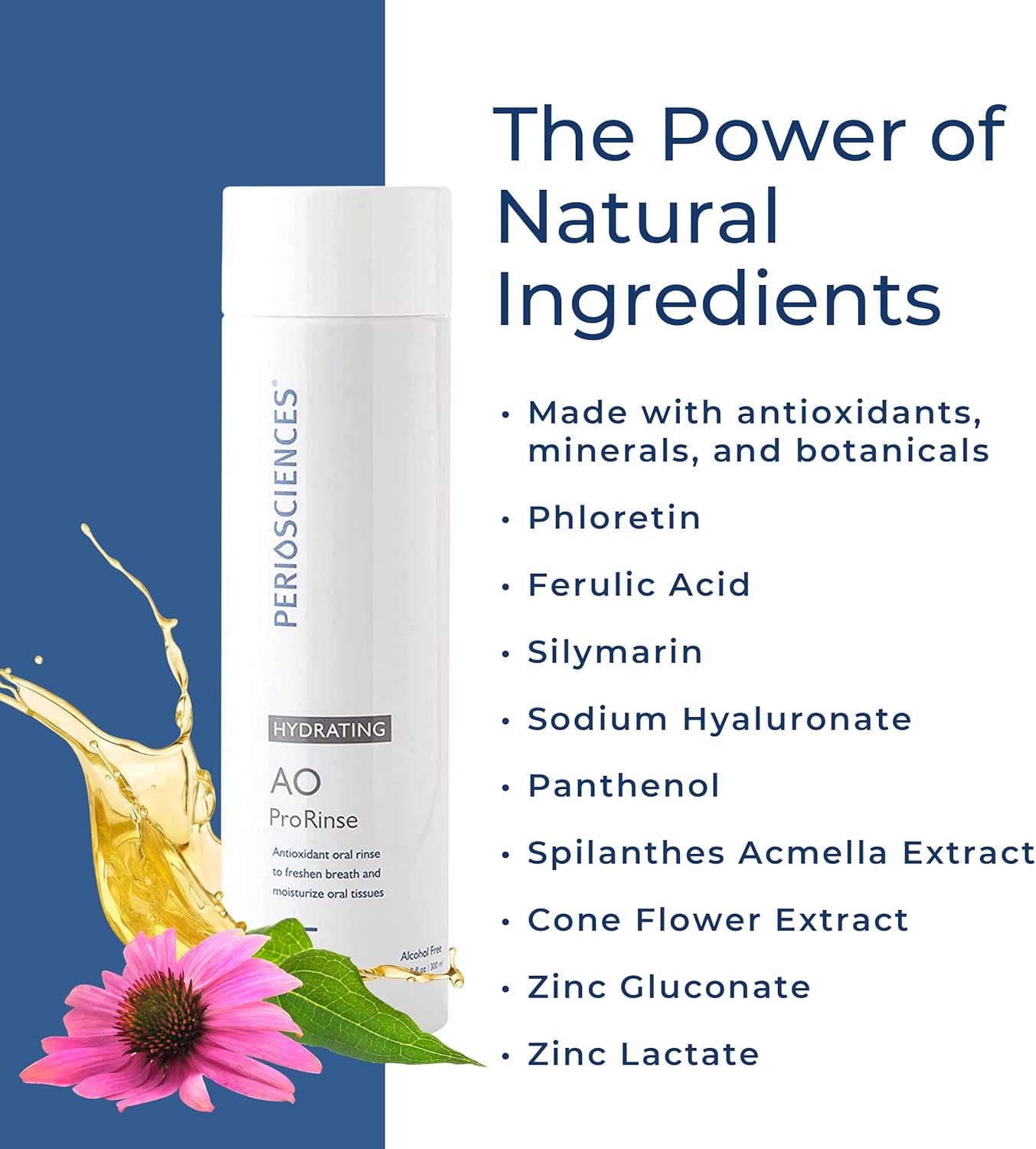 - For your oral health - PerioSciences AO ProRinse Hydrating Oral Rinse saturates and freshens your mouth with a potent blend of moisturizers, botanicals and zinc compounds. This antioxidant-based mouthwash also supports your saliva’s natural defenses and helps with extreme dry oral sensations.
