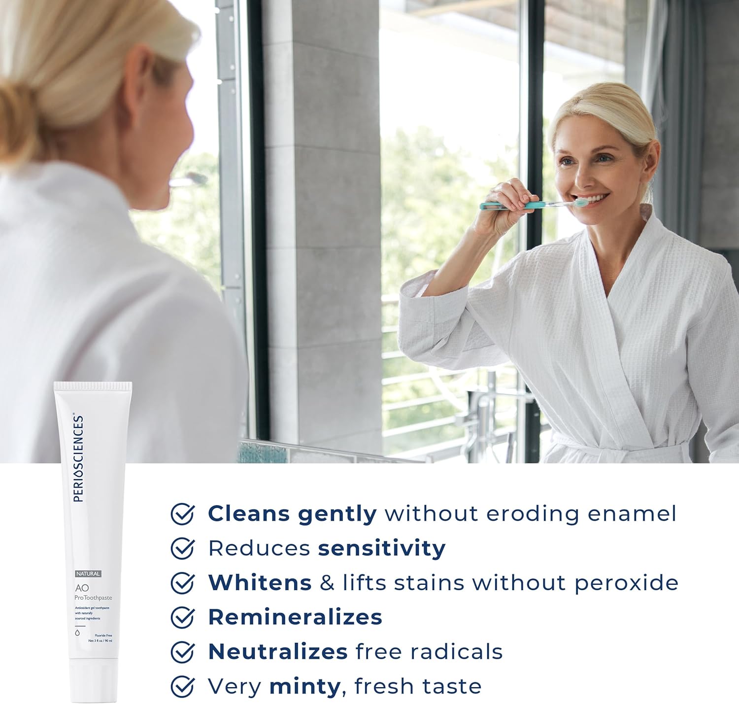 PerioSciences AO Pro Natural Toothpaste with Nano Hydroxyapatite, Remineralizing, Fluoride Free, SLS Free, Gluten Free 3 fl oz / 90ml