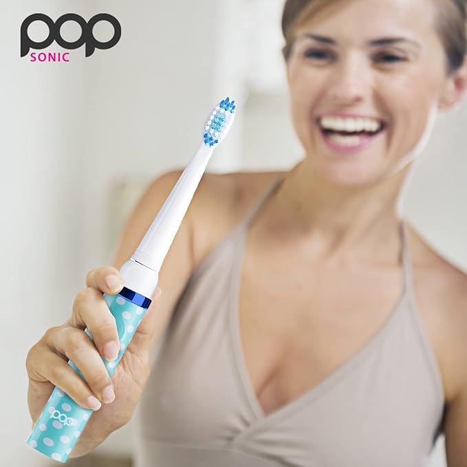 - Battery Toothbrush for Adults & Kids: Keep your teeth clean and breathe fresh all day long with our Blue Dots Go Sonic toothbrush by Pop Sonic. This 7” tall vibrating Sonic travel toothbrush features 2 speeds with vibrations from 15000 to 30000 brush strokes per minute.