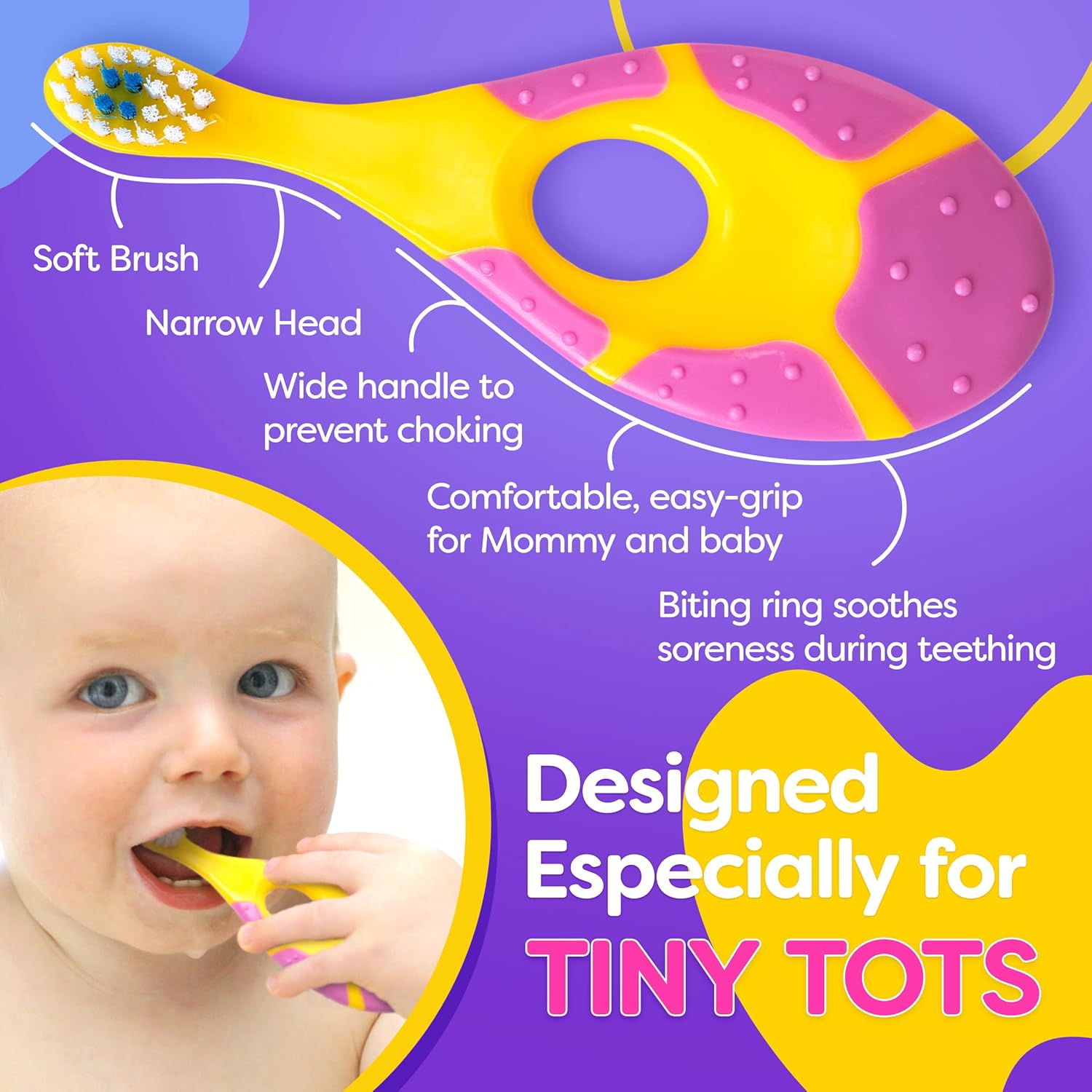 - BABY ORAL CLEANER - Are you searching for the perfect extra soft baby brush that will make your baby’s first toothbrushing experience pleasant and unforgettable? - This dentist recommended baby toothbrush is just what you need to learn your little one the basics of oral hygiene. Plus, the lovely and colourful design is made to attract the kids’ interest in brushing their teeth, so what is here not to love?