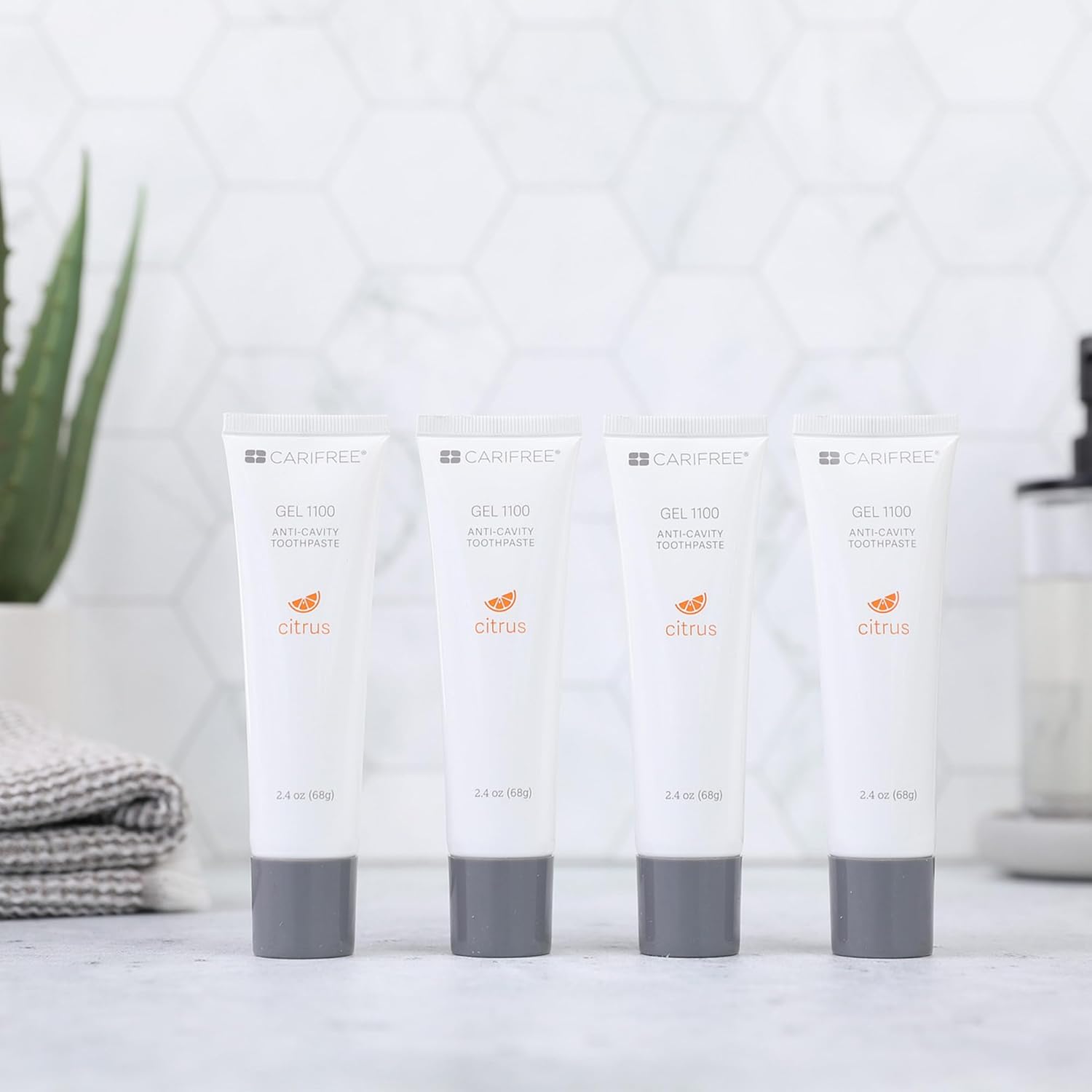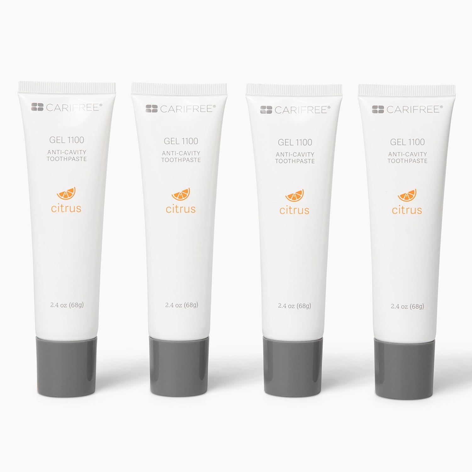 CariFree Gel 1100 (Citrus) Anti-Cavity Fluoride Toothpaste with Nano Hydroxyapatite, Cavity Prevention and Enamel Protection, Dentist Recommended for Kids and Adults, 2.40 oz. (Pack of 4)