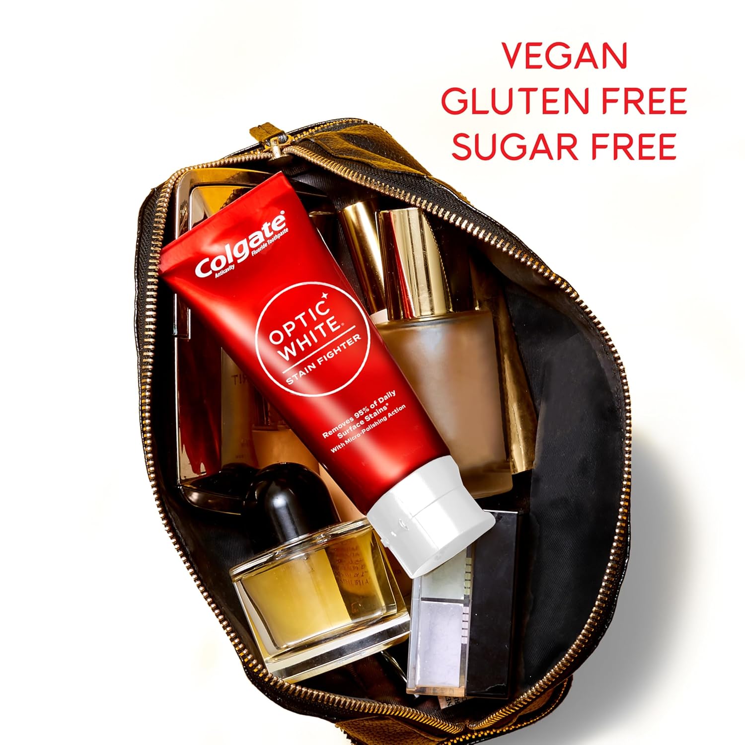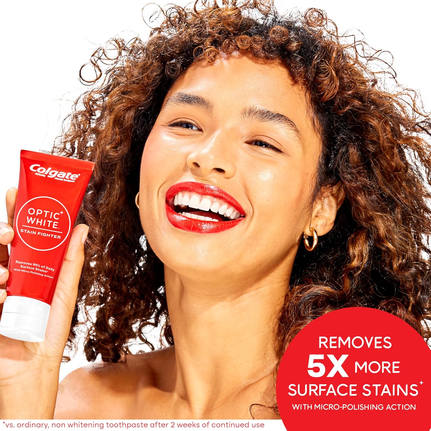 - Includes one (1) 4.2 oz tube of Colgate Optic White Stain Fighter Teeth Whitening Toothpaste, Anticavity Fluoride Toothpaste