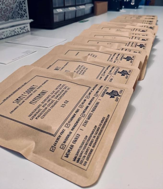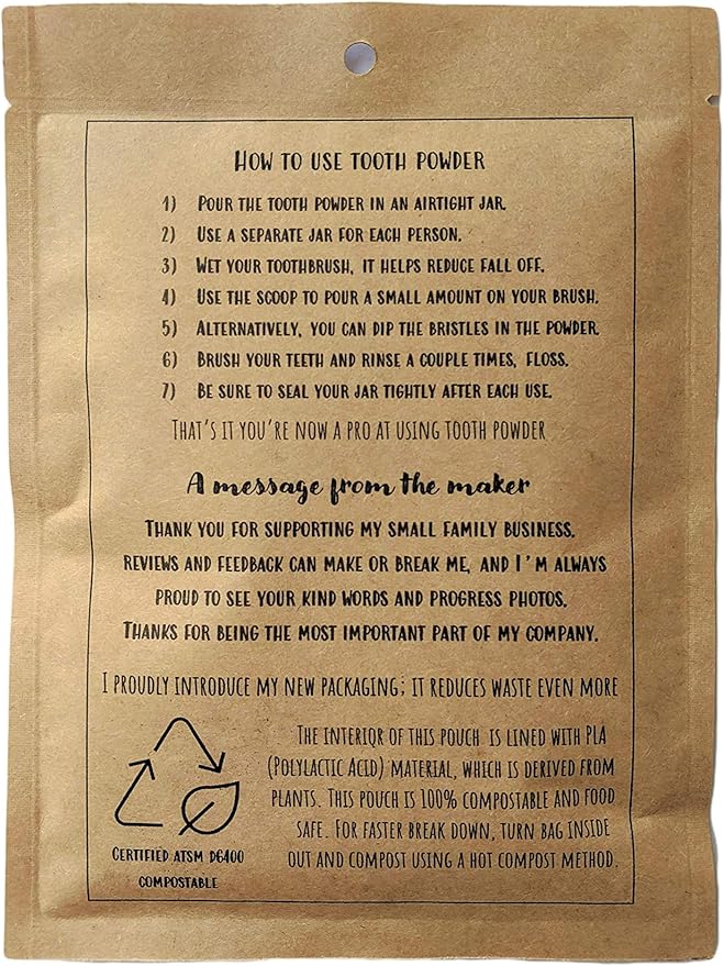 Zero Waste up to 6 Month Supply Organic Vegan Fluoride Free Tooth Powder Peppermint Flavor- Ships Without Any Plastic Packaging I Natural Whitening I Stronger Teeth