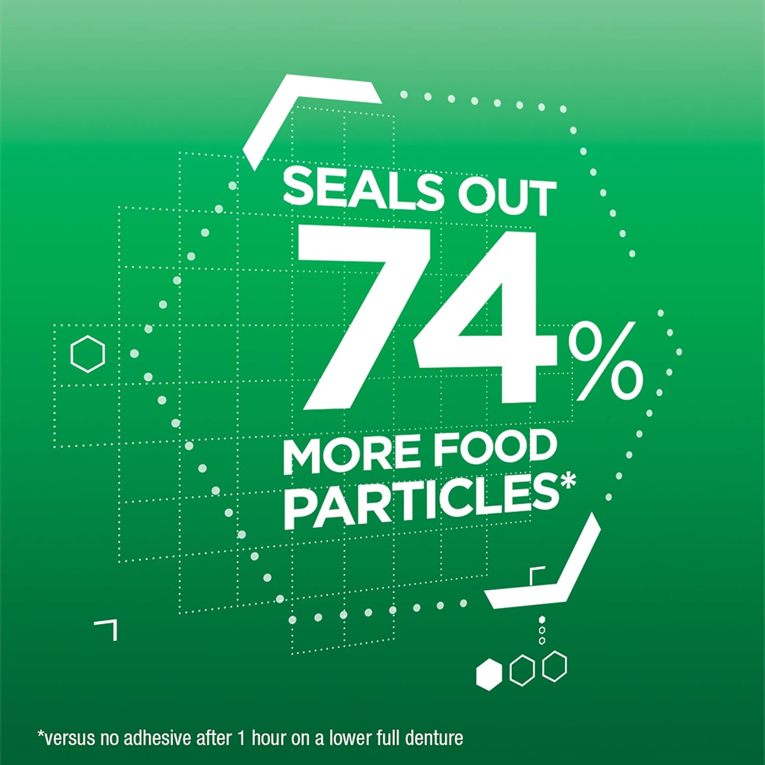 - Super Poligrip Free Denture Adhesive Cream offers a strong 12 hour hold that seals out up to 74 percent more food particles (versus no adhesive after 1 hour on a lower full denture)