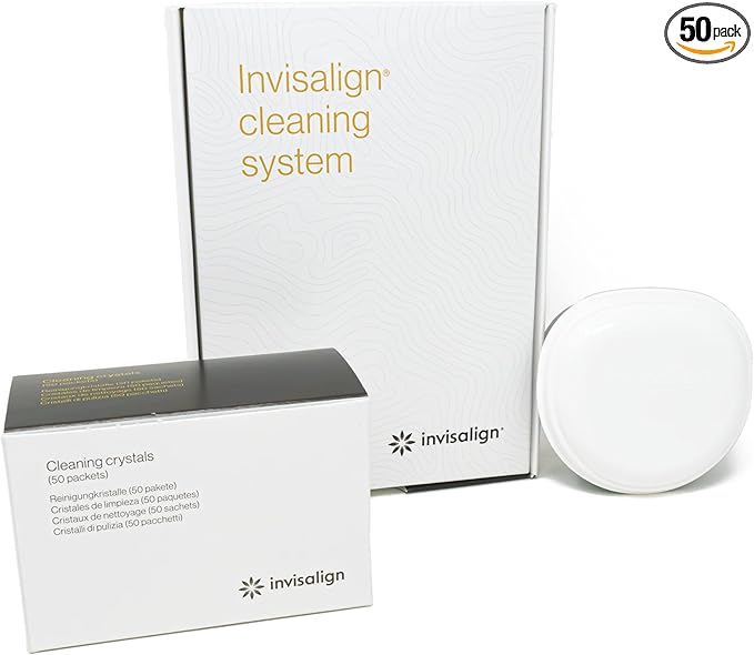 INVISALIGN Cleaning Crystals for Clear Aligners and Retainers with Tub, (50 Packets)