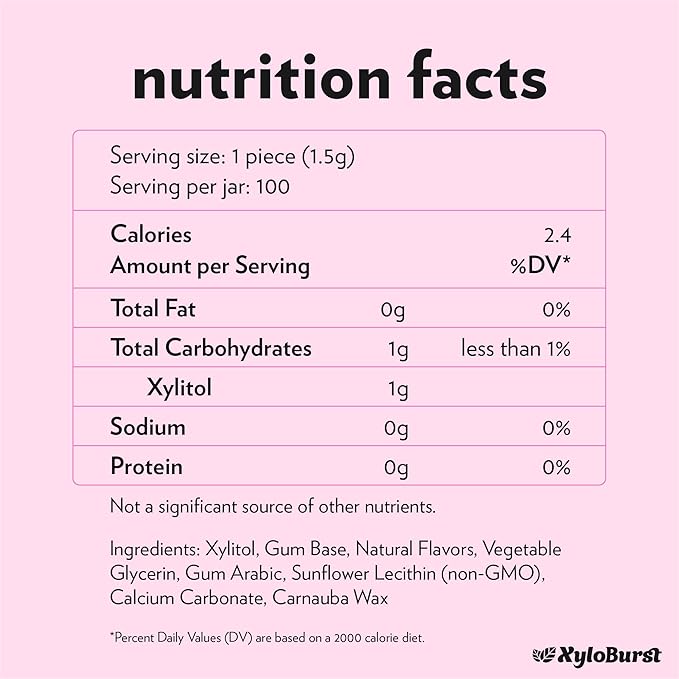 - BOOST ORAL HEALTH - Professional studies suggest that incorporating xylitol into your daily routine, alongside regular brushing, diminishes the risk of tooth decay. XyloBurst dental chewing gum helps you achieve the recommended 6 to 8 grams of xylitol daily, fostering healthy gums & teeth, resulting in fewer cavities and a radiant smile.