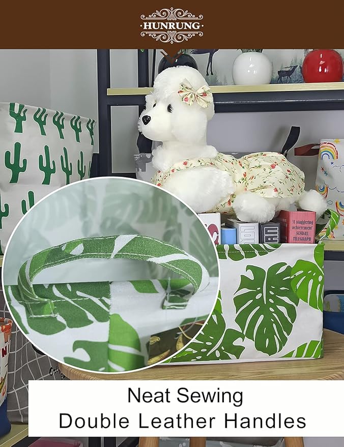 HUNRUNG Rectangle Storage Basket Cute Canvas Organizer Bin for Pet/Children Toys, Books, Clothes Perfect for Rooms/Playroom(Leaf)