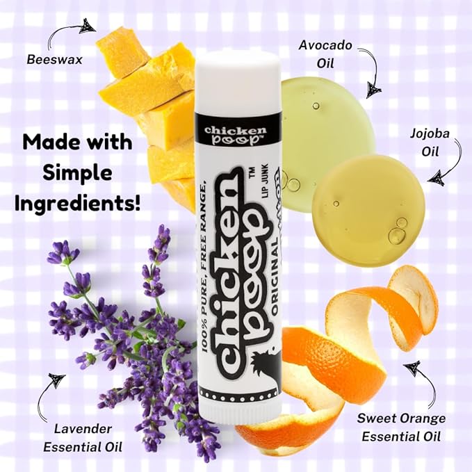 Chicken Poop® Lip Balm 100% Natural Moisturizer for Dry, Chapped Lips, 0.15 oz, (Original), Pack of 5