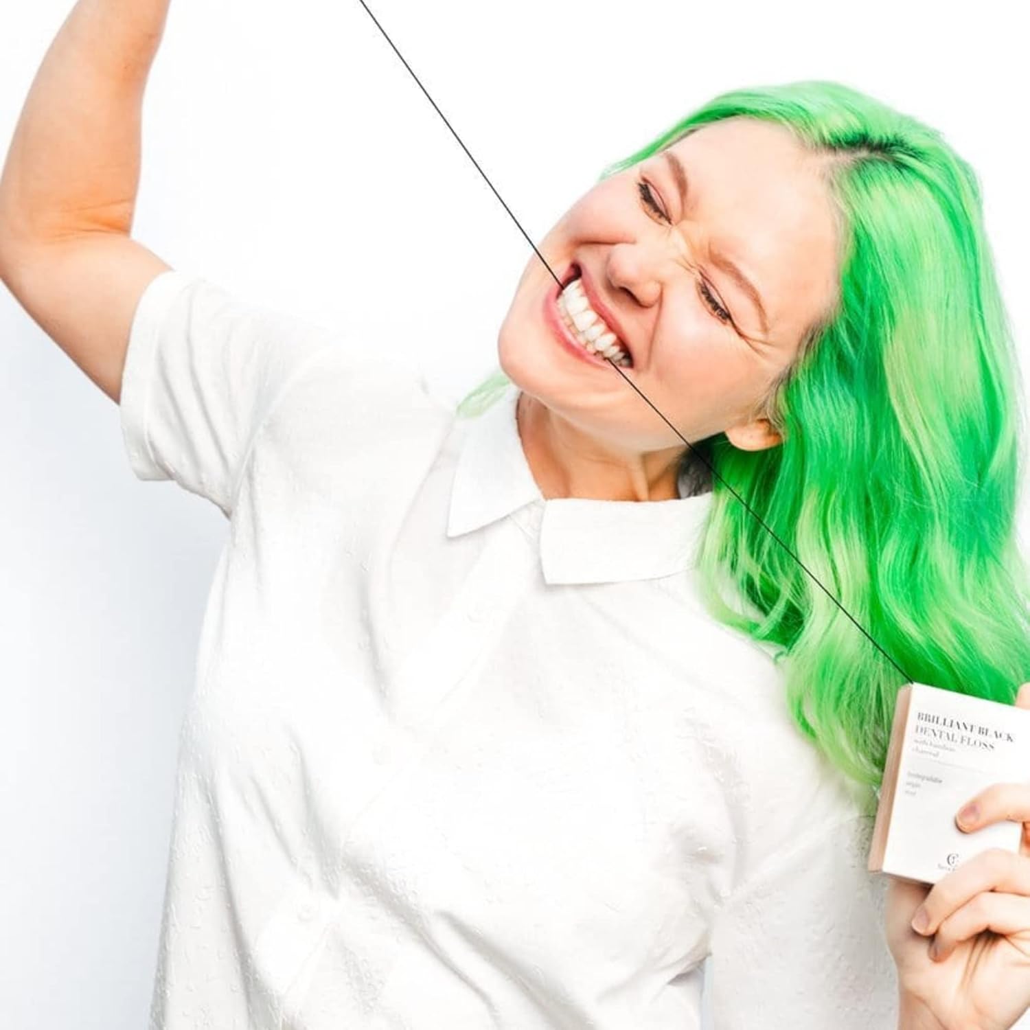 - BRIGHTEN YOUR SMILE: Terra & Co.'s Brilliant Black dental floss is eco-friendly and made with mint-spiked bamboo fibers. Plant-derived ingredients, like coconut oil and activated charcoal, work to remove buildup where a toothbrush can’t reach.