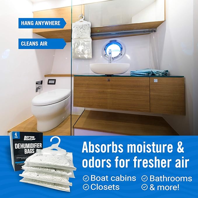 - ABSORBS AND TRAPS EXCESS MOISTURE: Our marine dehumidifier bags absorb moisture and water from the air to keep things dry. Gets rid of unwanted smells and control moisture for a damp boat cabin and other enclosed spaces that need humidity control.