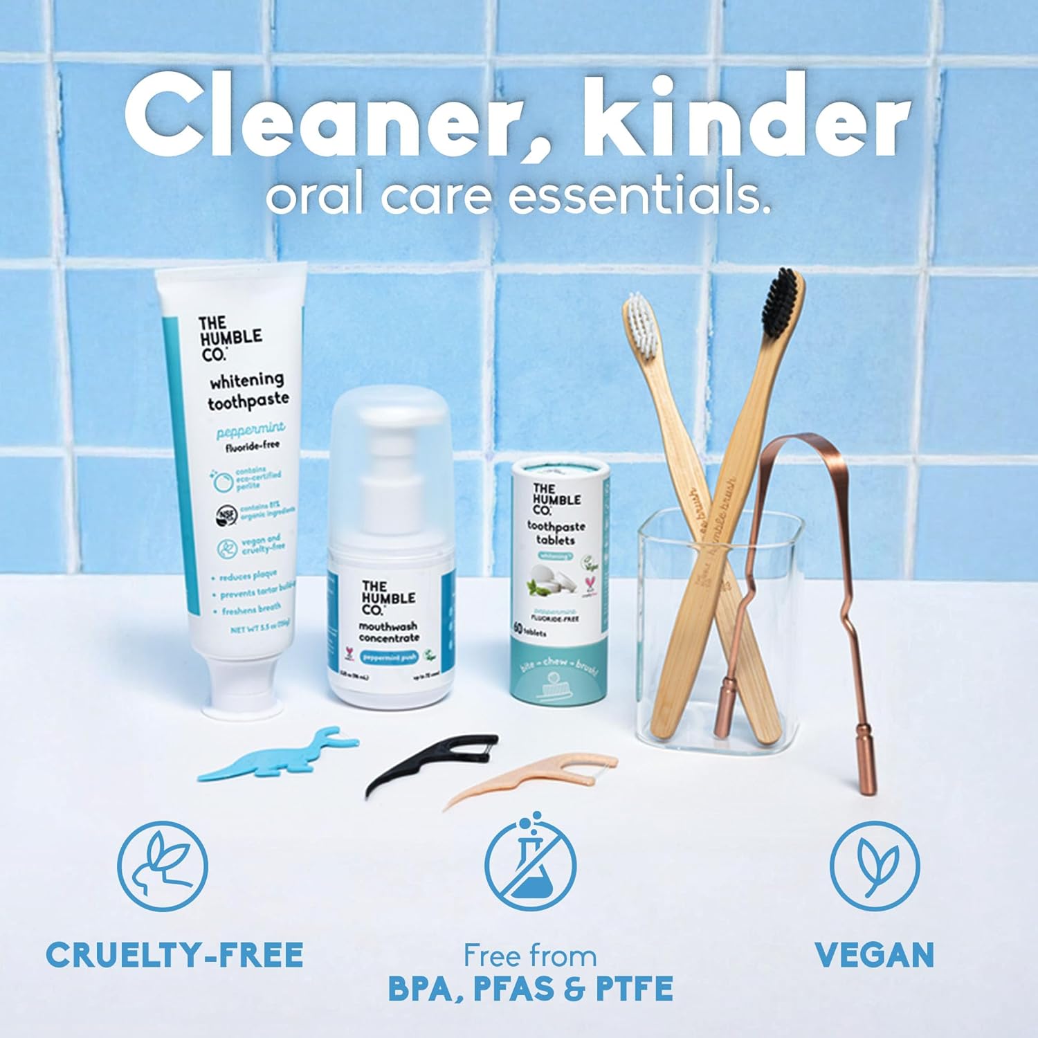 - No Mystery Lists, Just Honest Care: Every Humble Co. product is designed by dentists, is 100% vegan, cruelty-free, PFAS and BPA - free, and made without unnecessary additives.