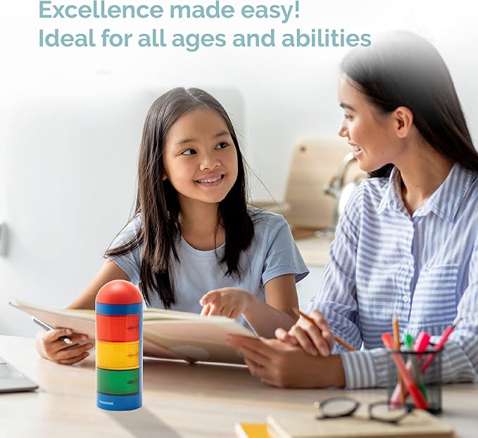 - [Innovative Traffic Light Gamification] The stoplight visual timer with pre-alarm function, featuring red, yellow, and green lights, gamifies time management, rendering it both engaging and visually intuitive. It effectively conveys "Let's Go," "Nearly There," and "Stop," enhancing user-friendliness